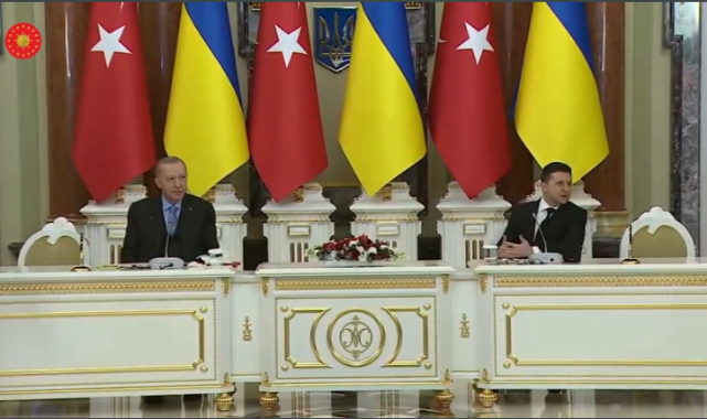 Cumhurbaşkanı Recep Tayyip Erdoğan bugün Ukrayna’ya gitti. Ukrayna’da resmi törenle karşılanan Erdoğan toplantı sonrasında Ukrayna Devlet Başkanı Zekenskiy ile ortak basın açıklaması yaptı. Akabinde Türkiye ve Ukrayna arasında Serbest Ticaret Anlaşması imzalandı.Haber: Sümer TAŞKIRAN