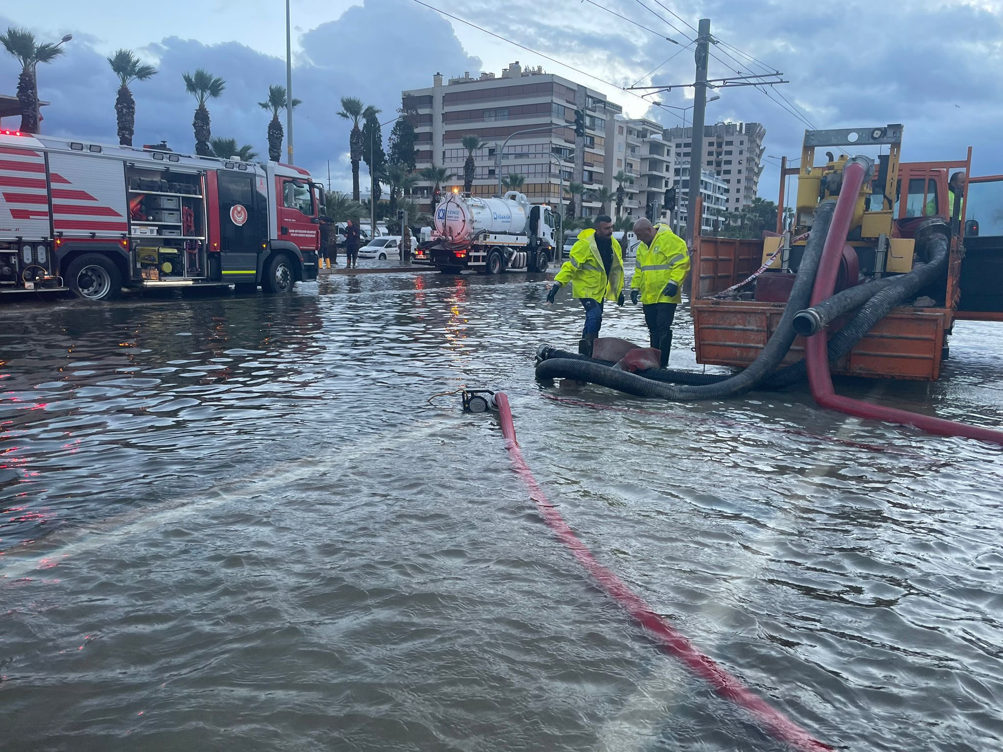 temas etmesi yüzünden bölgesel elektrik kesintileri meydana geldi. İzmir Büyükşehir Belediyesi İZSU Genel Müdürlüğü ile İtfaiye Dairesi Başkanlığı ekipleri tarafından toplam