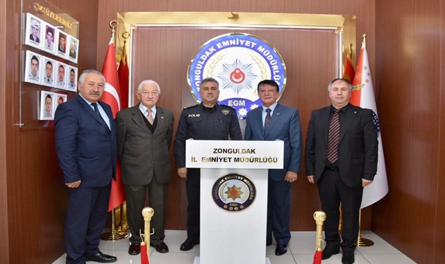 KYÇ Türkiye Polis Emeklileri Sosyal Yardım Derneği Zonguldak Şube Başkanı Hayrettin Gezer beraberindeki yönetim kurulu üyeleriyle birlikte Zonguldak İl Emniyet Müdürü Fahri Aktaş'a makamında ziyarette bulundu.